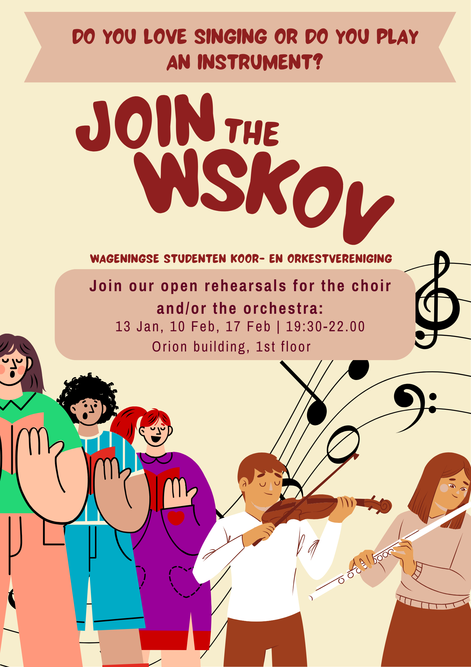 Follow us on Facebook and Instagram (@wskov.wageningen) to stay up to date on our open rehearsals and concerts and don’t hesitate to ask your questions via DM or email: wskov@wur.nl